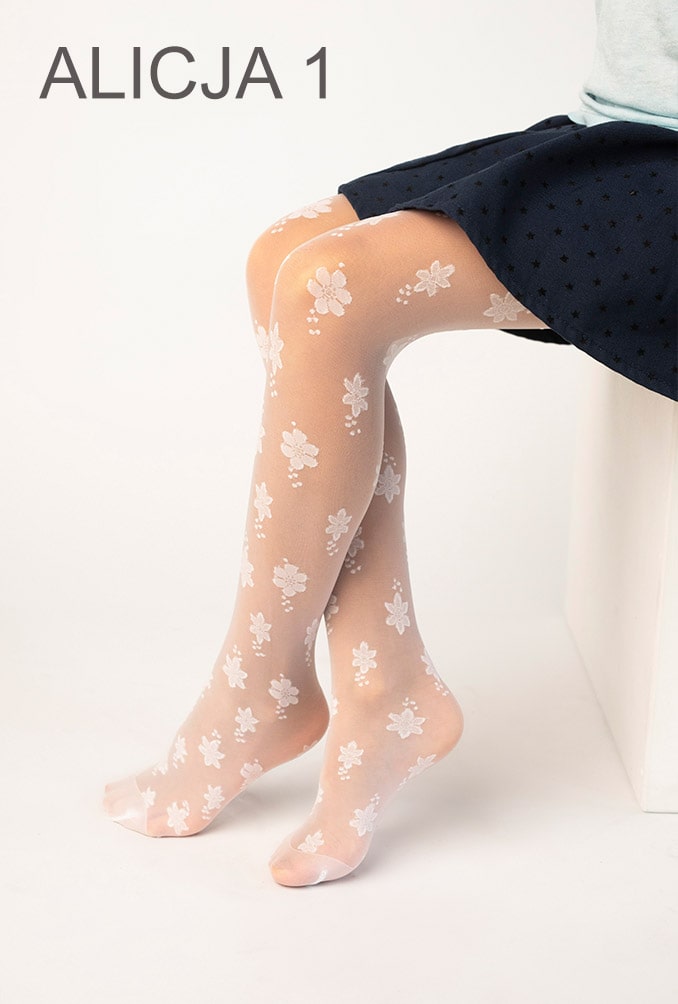 Rajstopki dziecięce „Alicja” 20 DEN to eleganckie i delikatne rajstopy stworzone specjalnie dla dzieci. Dzięki swojej cienkiej grubości 20 DEN, są lekkie, przewiewne i idealnie nadają się na specjalne okazje, jak i do codziennych stylizacji.