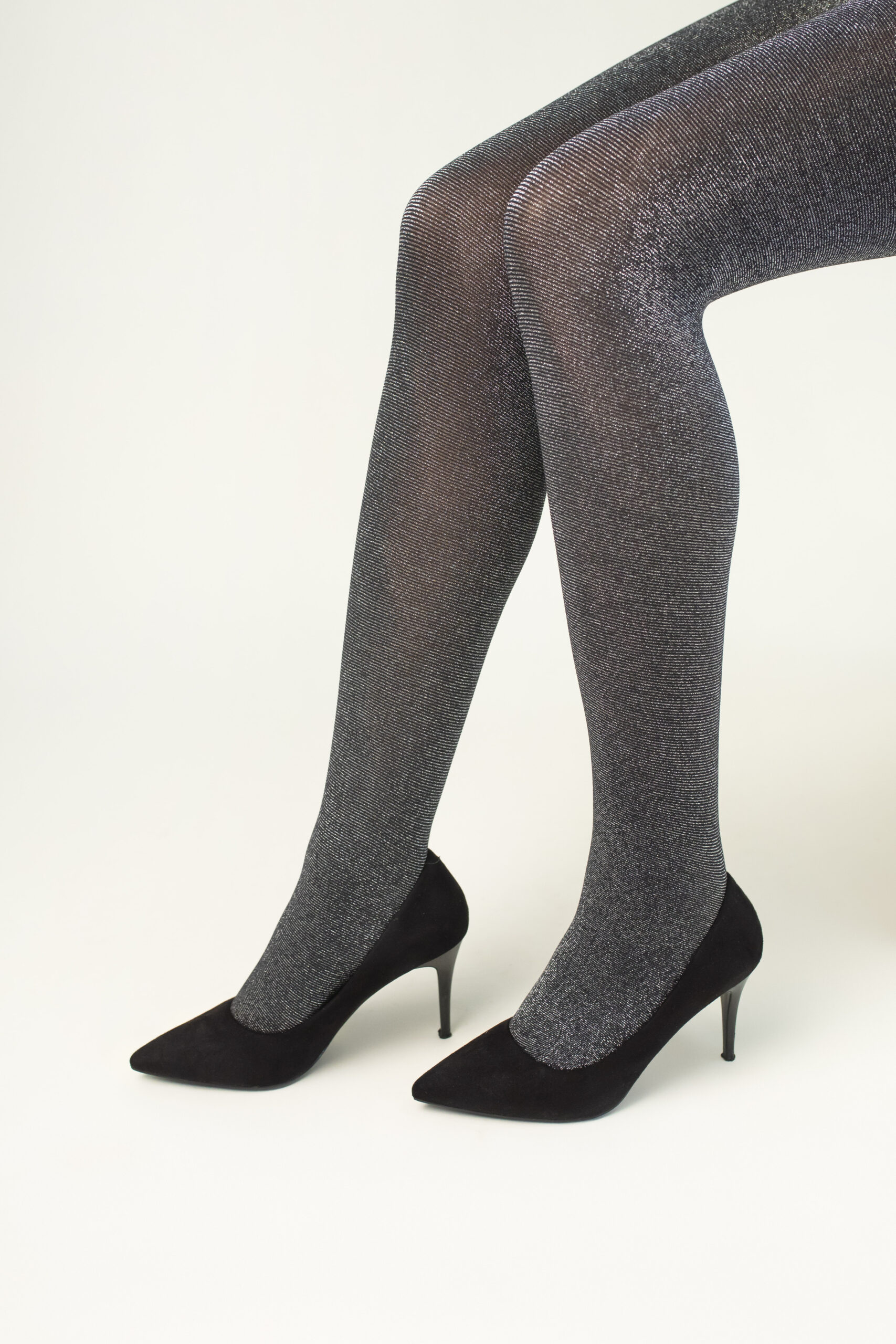 Stylowe rajstopy z mikrofibry 30 DEN ozdobione delikatną, srebrną lub złotą nitką pięknie mienią się w świetle, dodając nogom eleganckiego blasku.